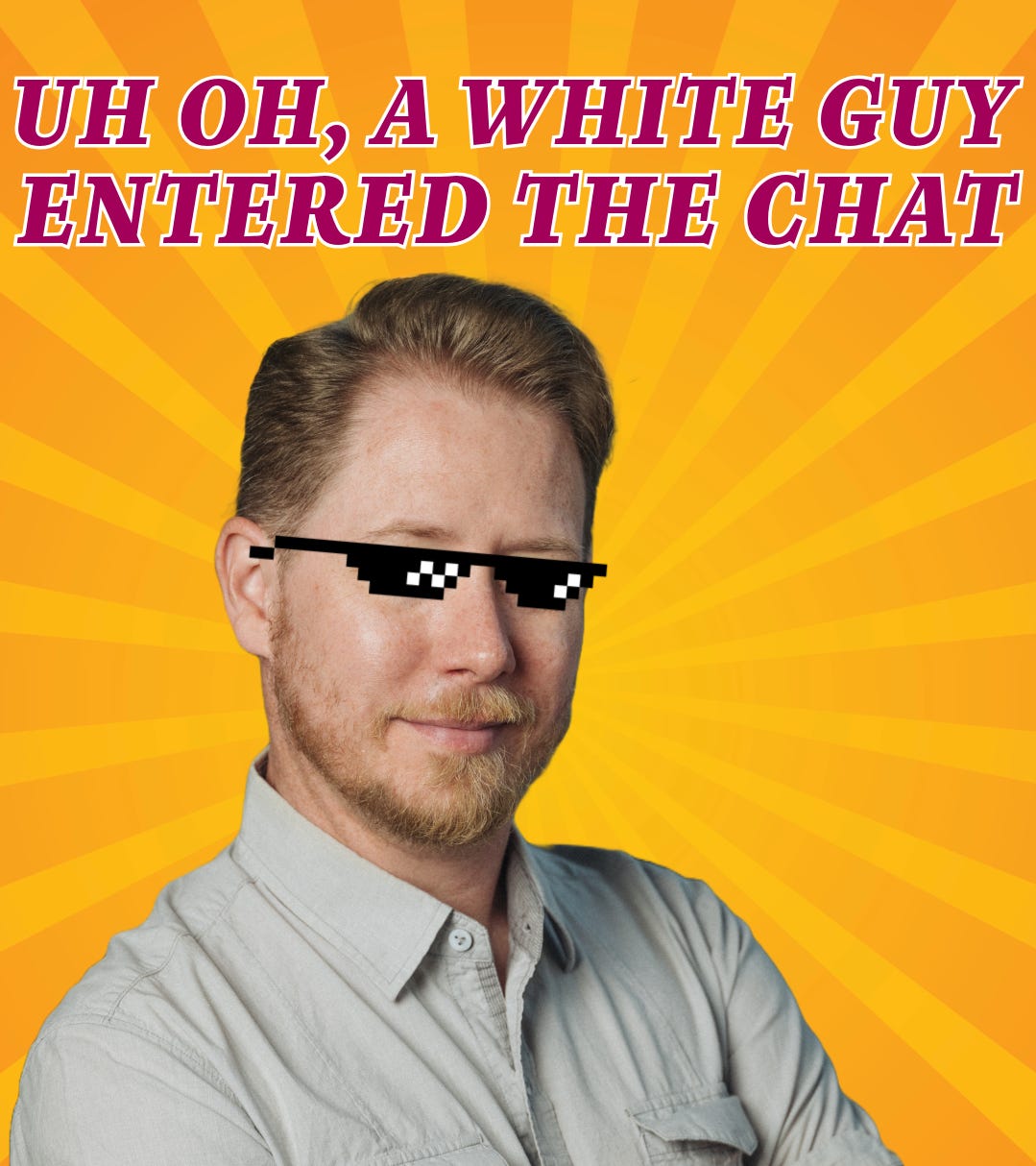 I made this as a meme image months ago. I still think it’s really funny, especially now that I’m starting not one but TWO podcasts! Generally I do think that white guys tend to be a little too free when sharing their opinions, but we gotta start drowning out those bad voices with some that are, at the VERY least, a little more informed and open to discussion. Unless you’re a Nazi. This is officially a “always punch a Nazi” page.